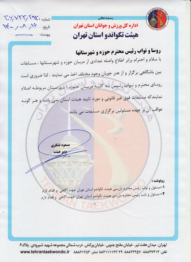 اطلاعیه/عدم برگزاری مسابقات بین باشگاهی در استان تهران