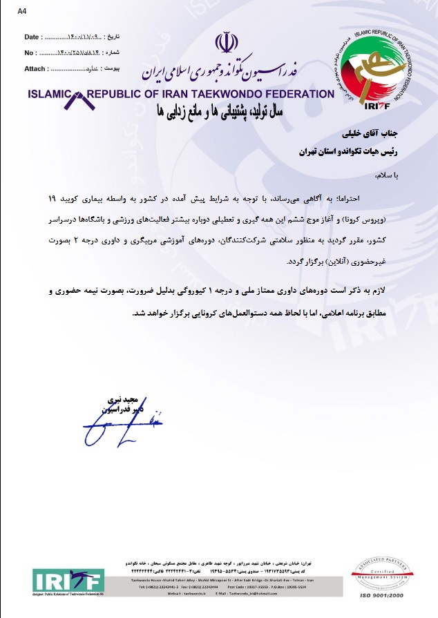 اطلاعیه/برگزاری دوره مربیگری وداوری درجه دو به صورت غیر حضوری