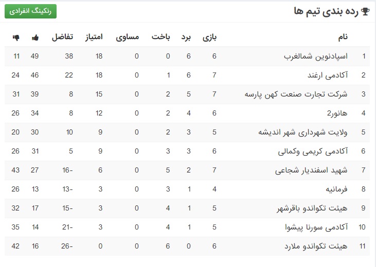 نتایج دیدارهای برگزار شده به شرح ذیل است ؛