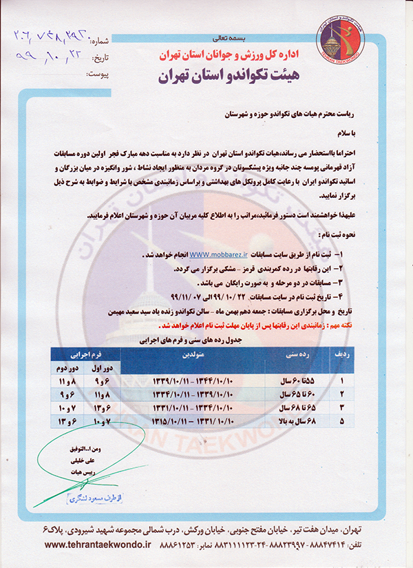 بخشنامه/ اولین دوره مسابقات آزاد قهرمانی پومسه پیشکسوتان
