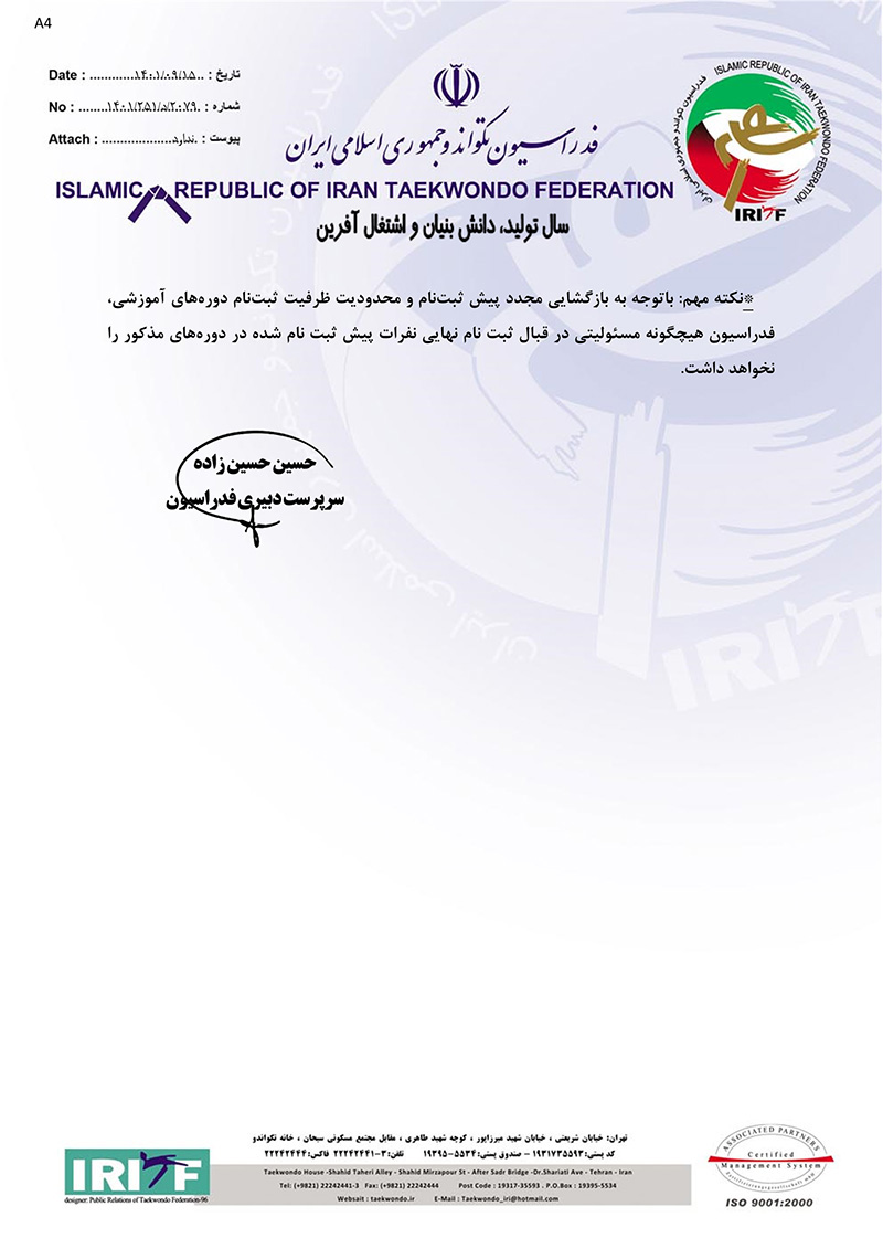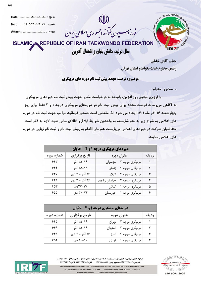 اطلاعیه/ فرصت مجدد جهت پیش ثبت نام در دورهای مربیگری