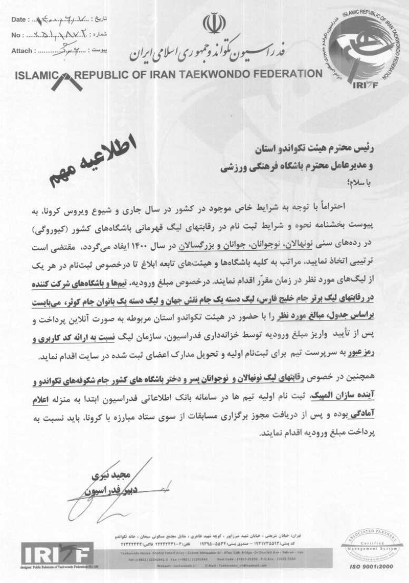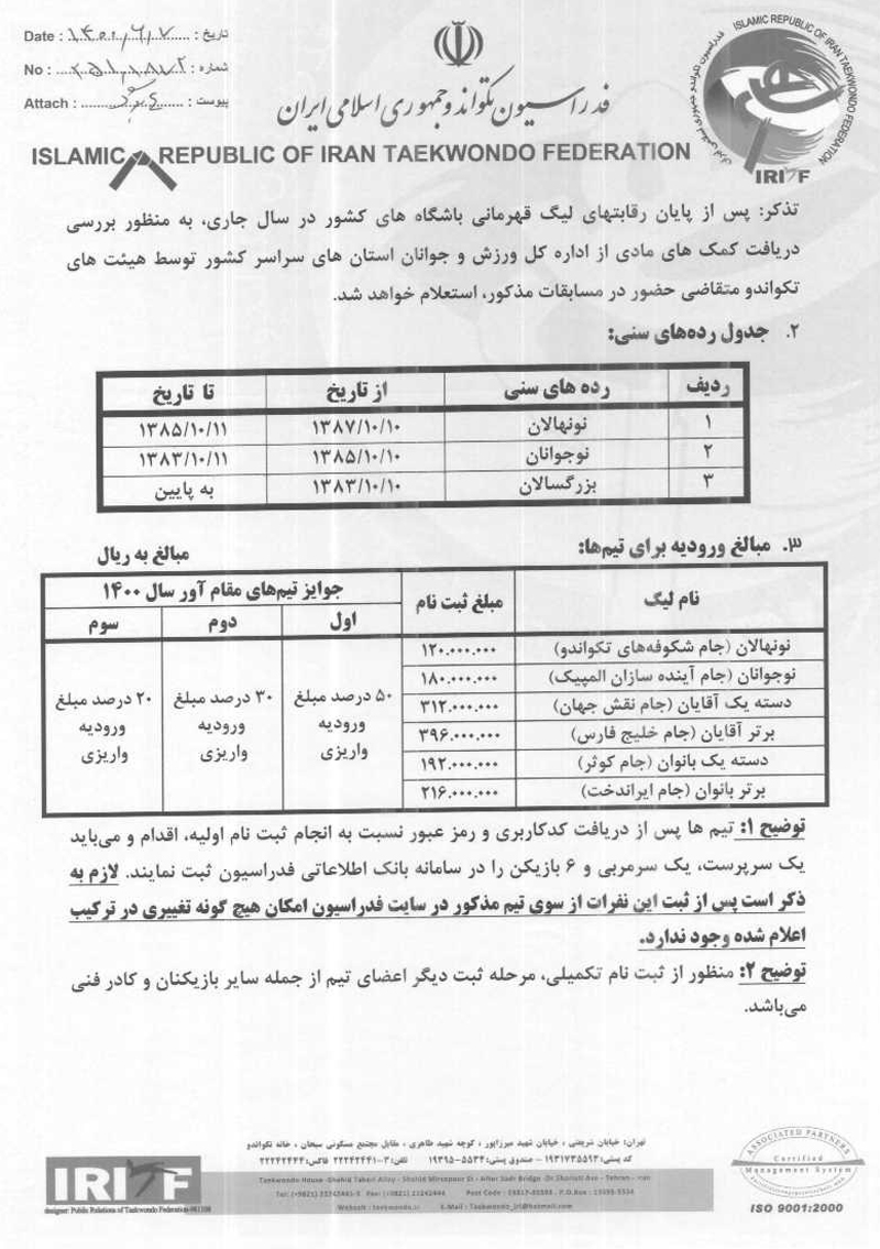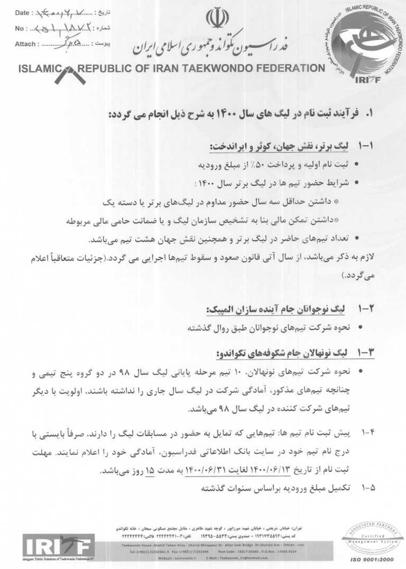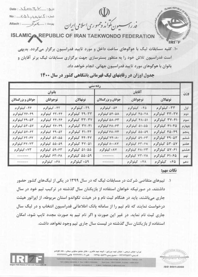اعلام شرایط ثبت نام در لیگ نونهالان، نوجوانان و بزرگسالان آقایان و بانوان باشگاه های کشور ۱۴۰۰