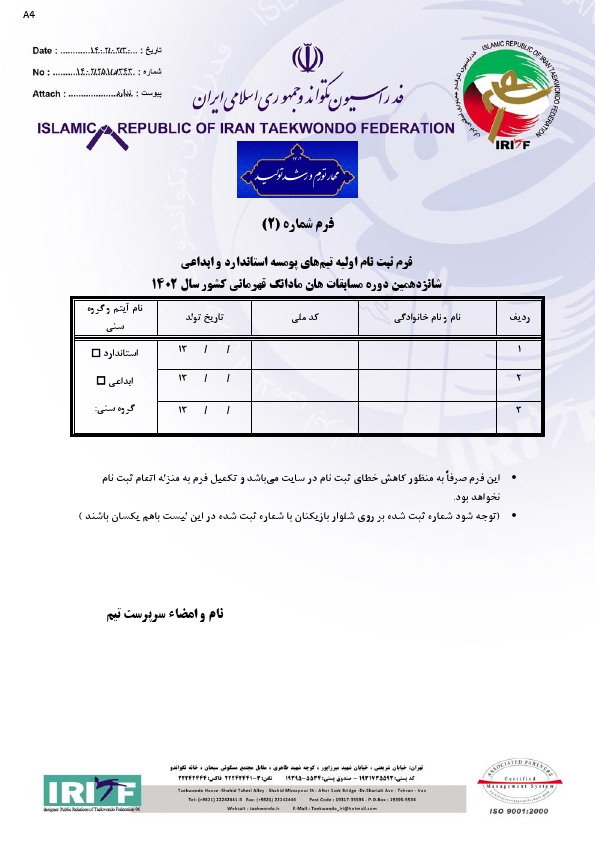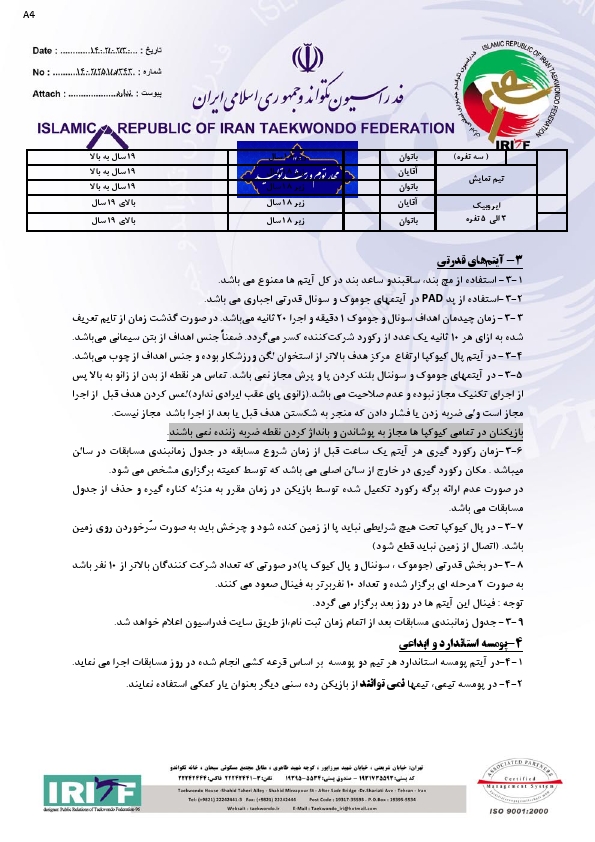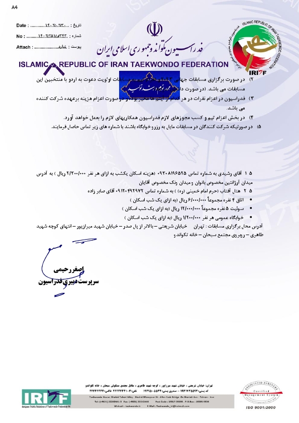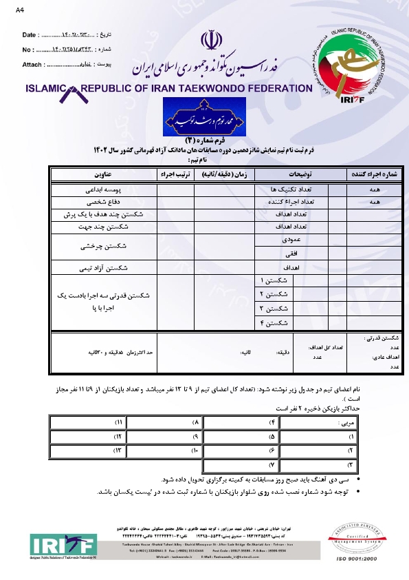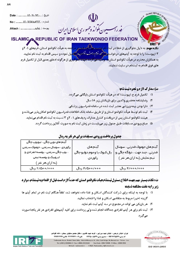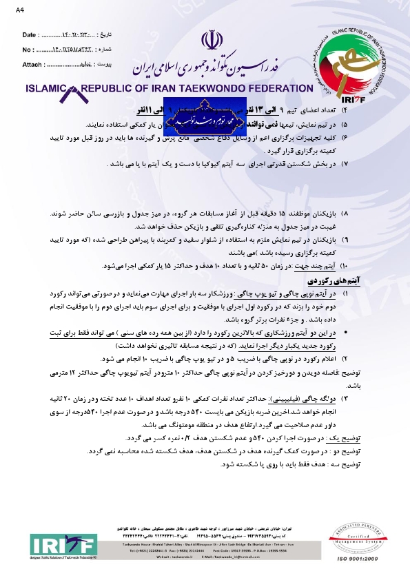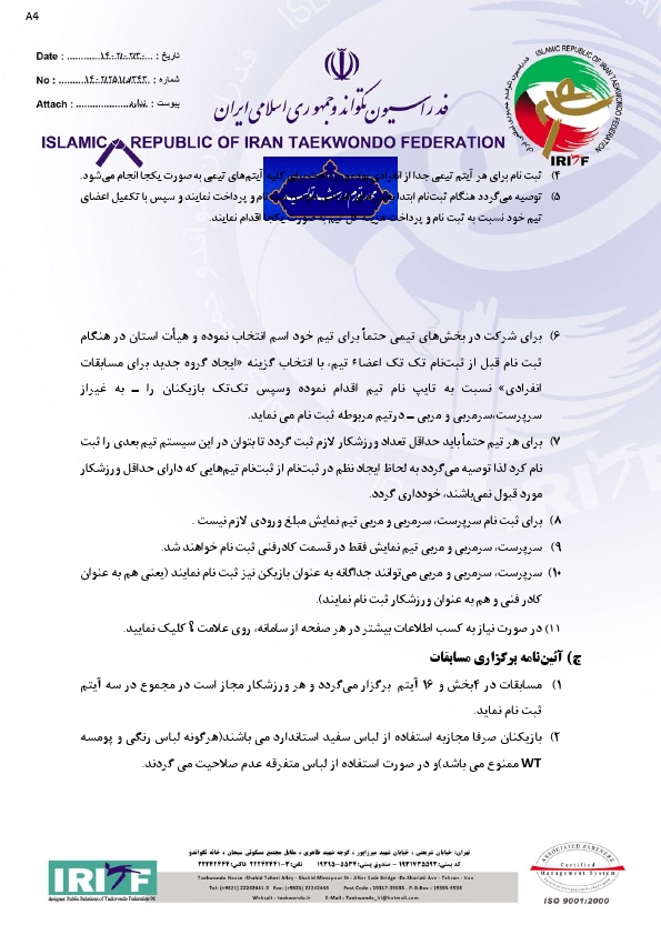 بخشنامه شانزدهمین دوره مسابقات آزاد قهرمانی هانمادانگ کشور ( آقایان و بانوان )