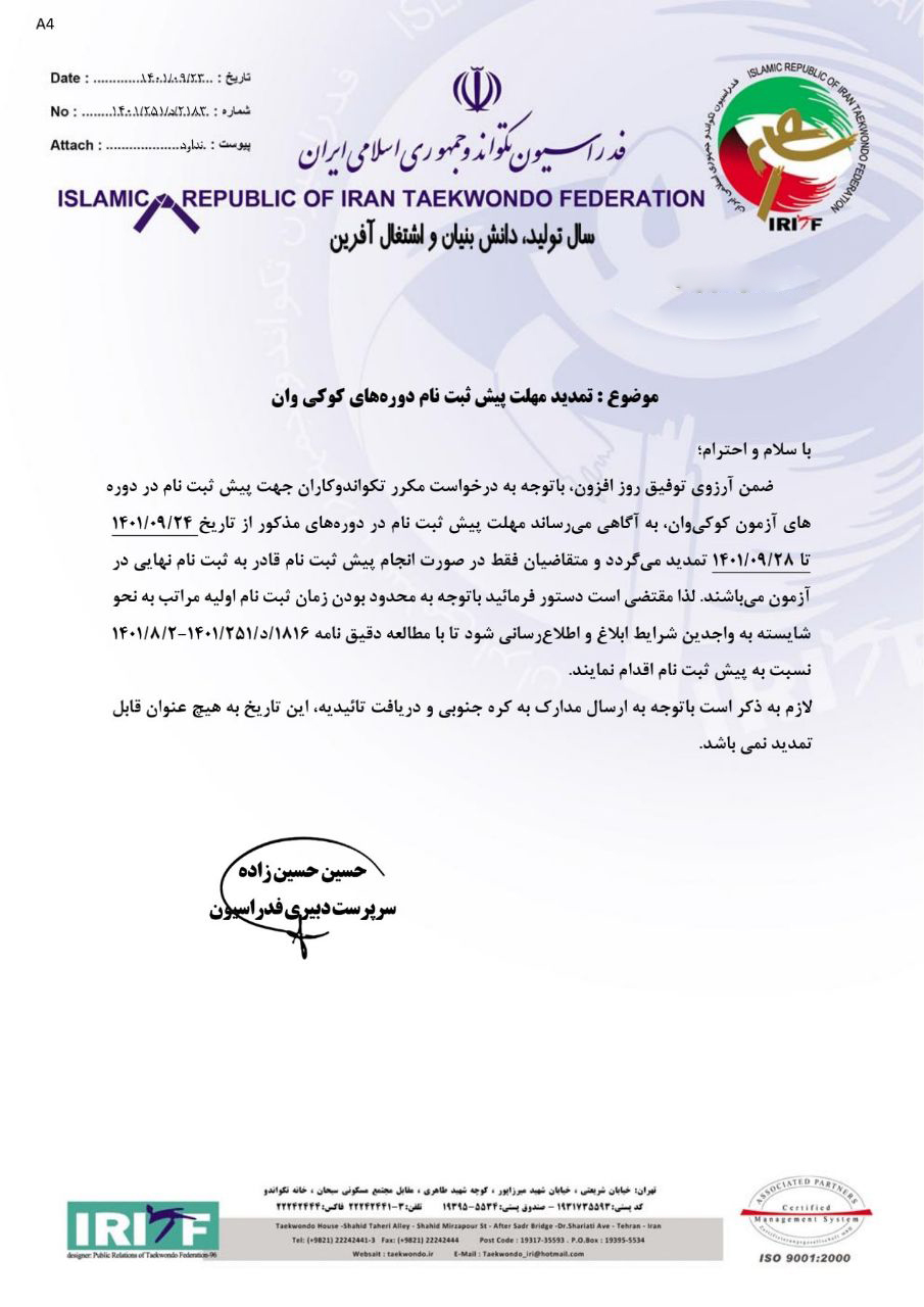 اطلاعیه/تمدید مهلت پیش ثبت نام دوره های کوکی وان