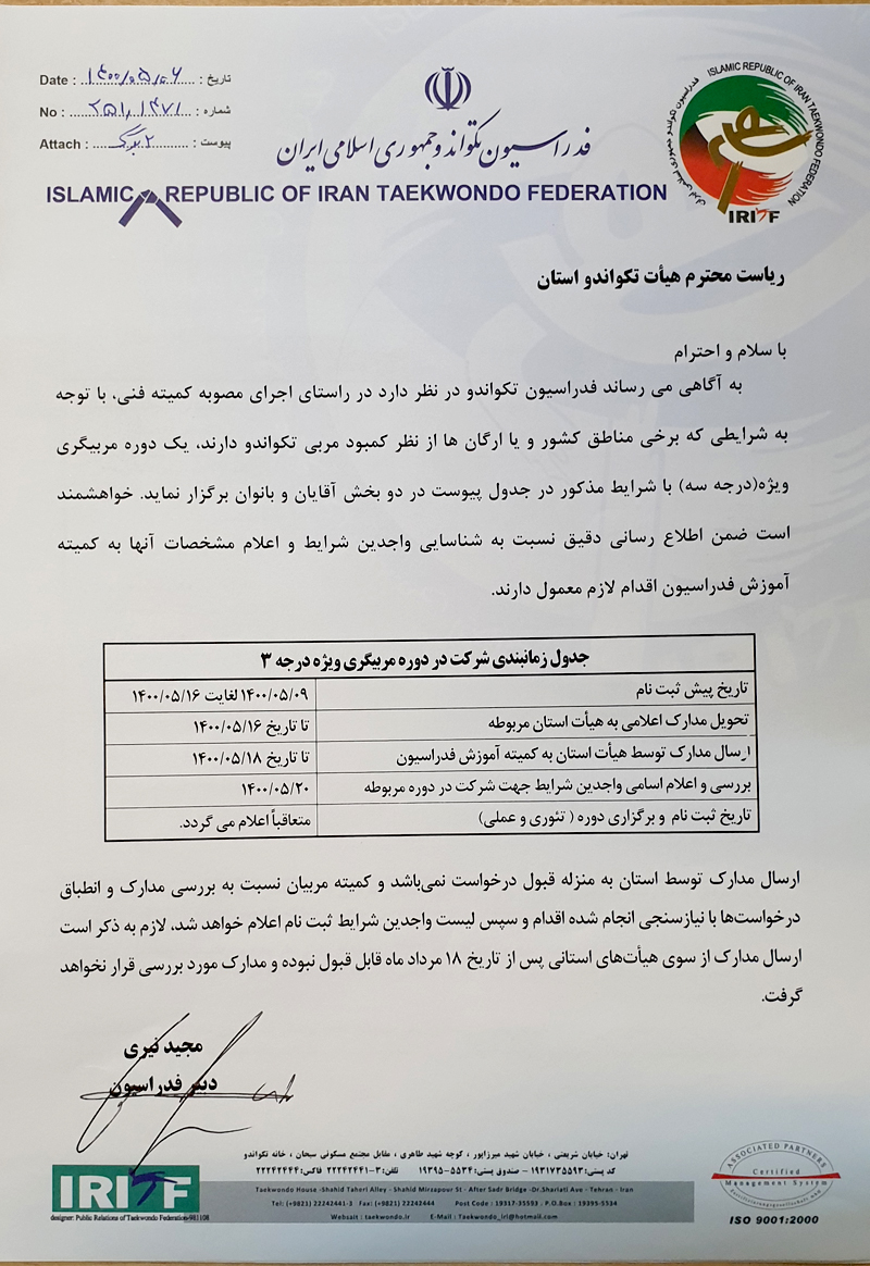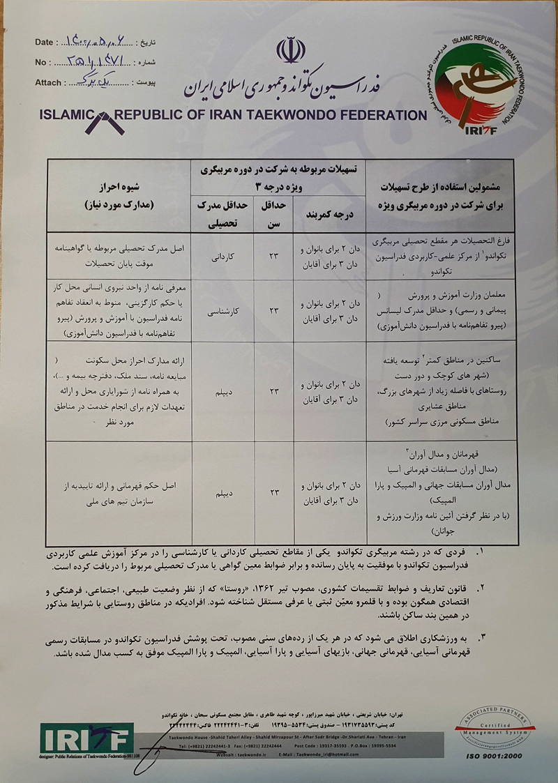 برگزاری دوره مربیگری ویژه درجه سه
