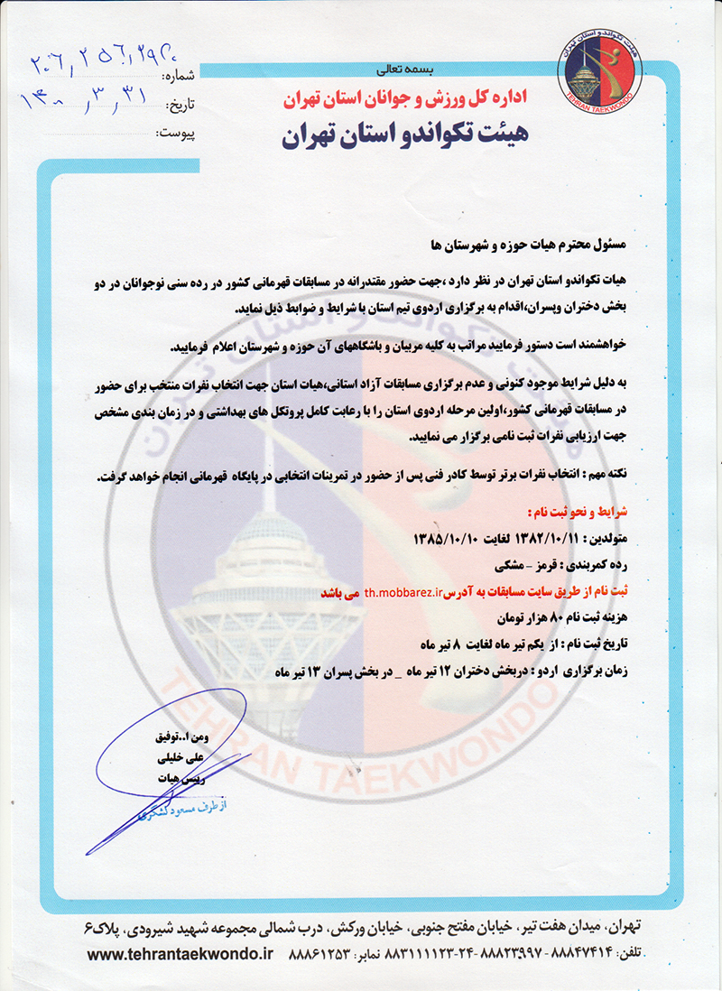 بخشنامه/ثبت نام ورود به مرحله نخست اردوی تیم نوجوانان استان ( دختران و پسران)