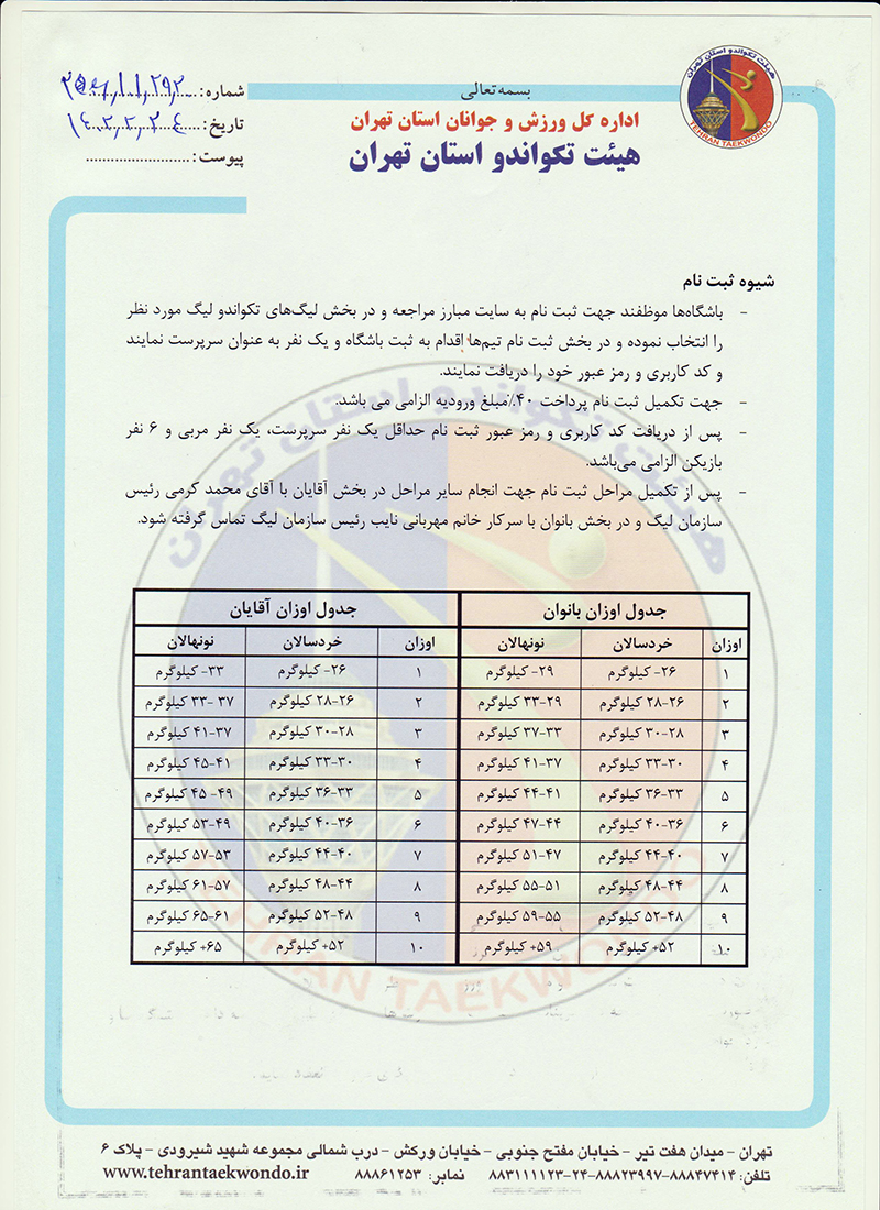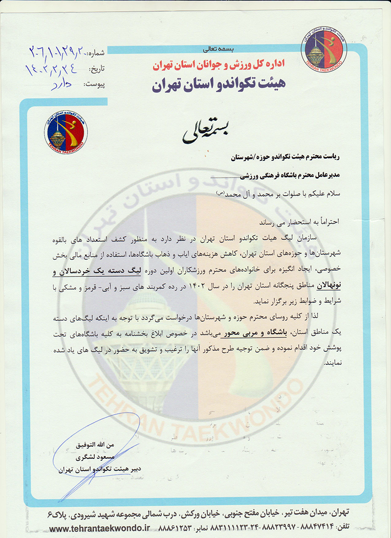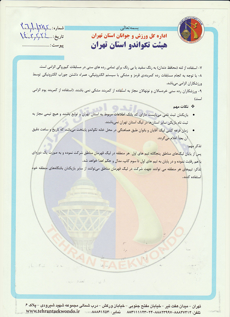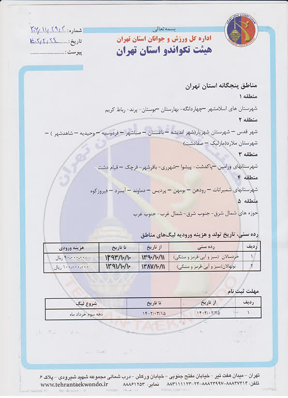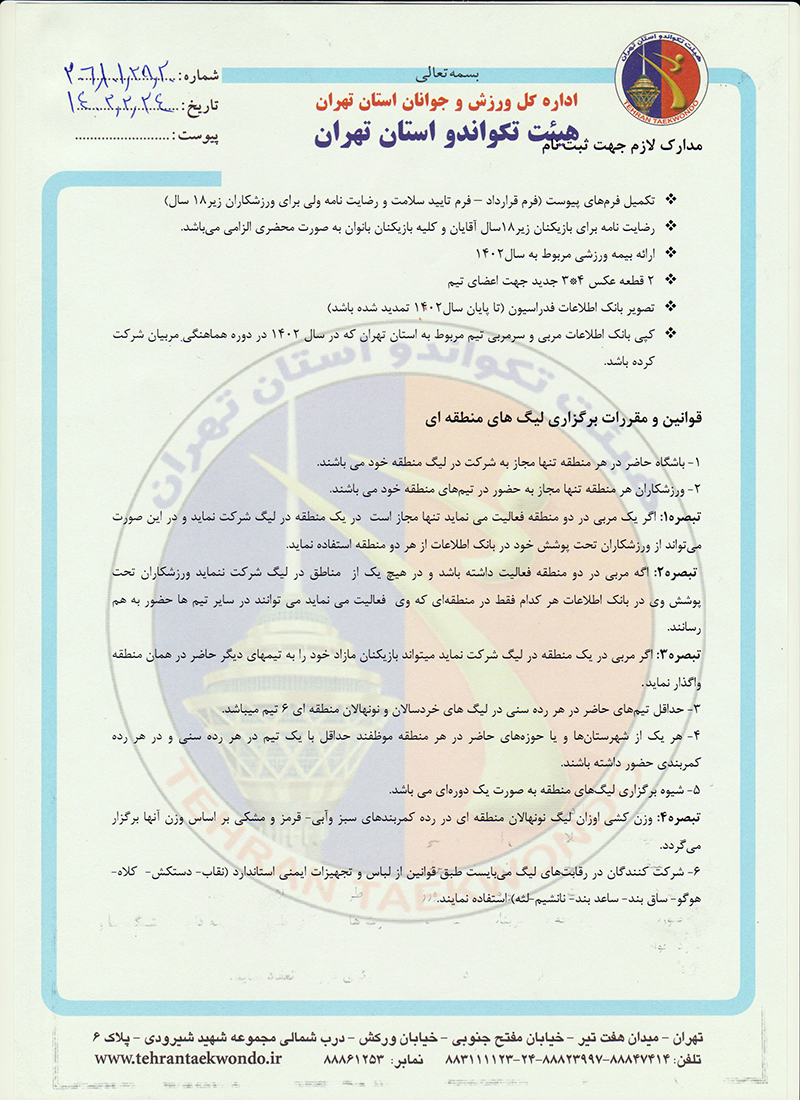 بخشنامه/رقابتهای لیگ منطقه ای باشگاههای استان تهران در سال ۱۴۰۲