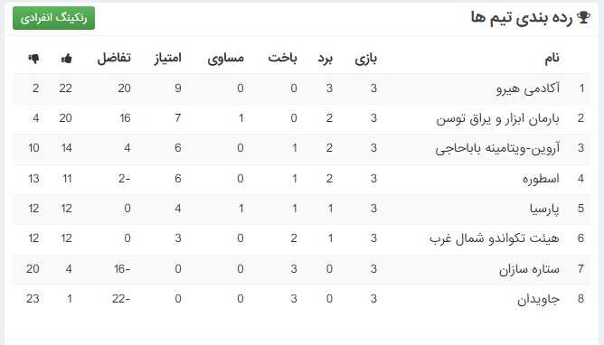 در پایان مبارزات هفته سوم ، تیم آکتدمی هیرو با ۴ برد و کسب ۹ امتیاز صدر جدول رده بندی را به خود اختصاص داد ،بارمان ابزار و یراق توسن نیز با ۲ برد ، یک تساوی ، کسب ۷ امتیاز دومی را به خود اختصاص داد و آروین-ویتامینه باباحاجی ۲ برد ، یک باخت و کسب ۶ امتیاز سوم شد.