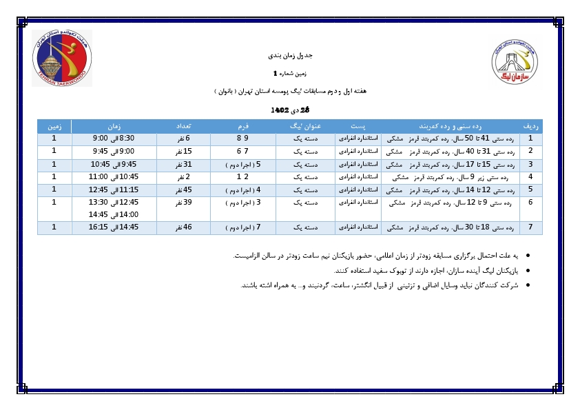 سلام اطلاع رسانی سه روز قبل از برگزاری مسابقات انجام شده است
