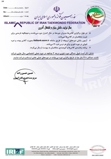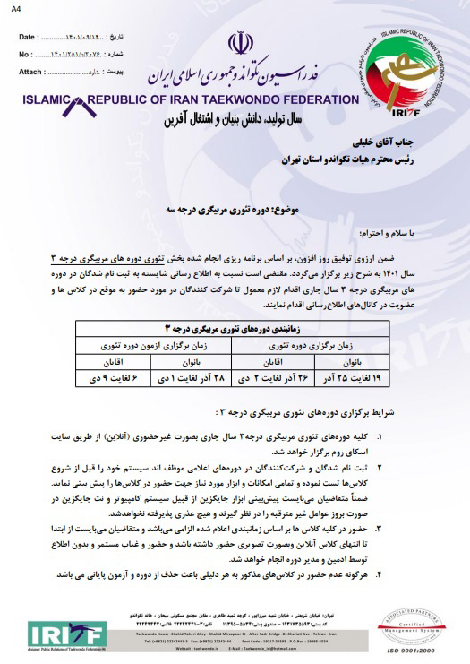 اطلاعیه/دوره تئوری مربیگری درجه سه تکواندو