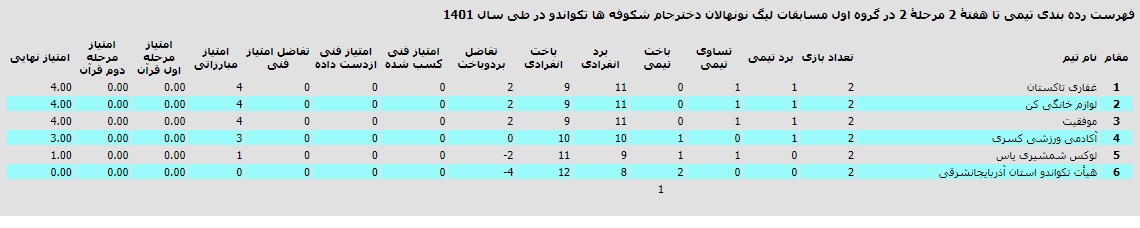 نتایج دیدارهای هفته اول و دوم از مرحله نهایی تیم های تهرانی به شرح ذیل است:
