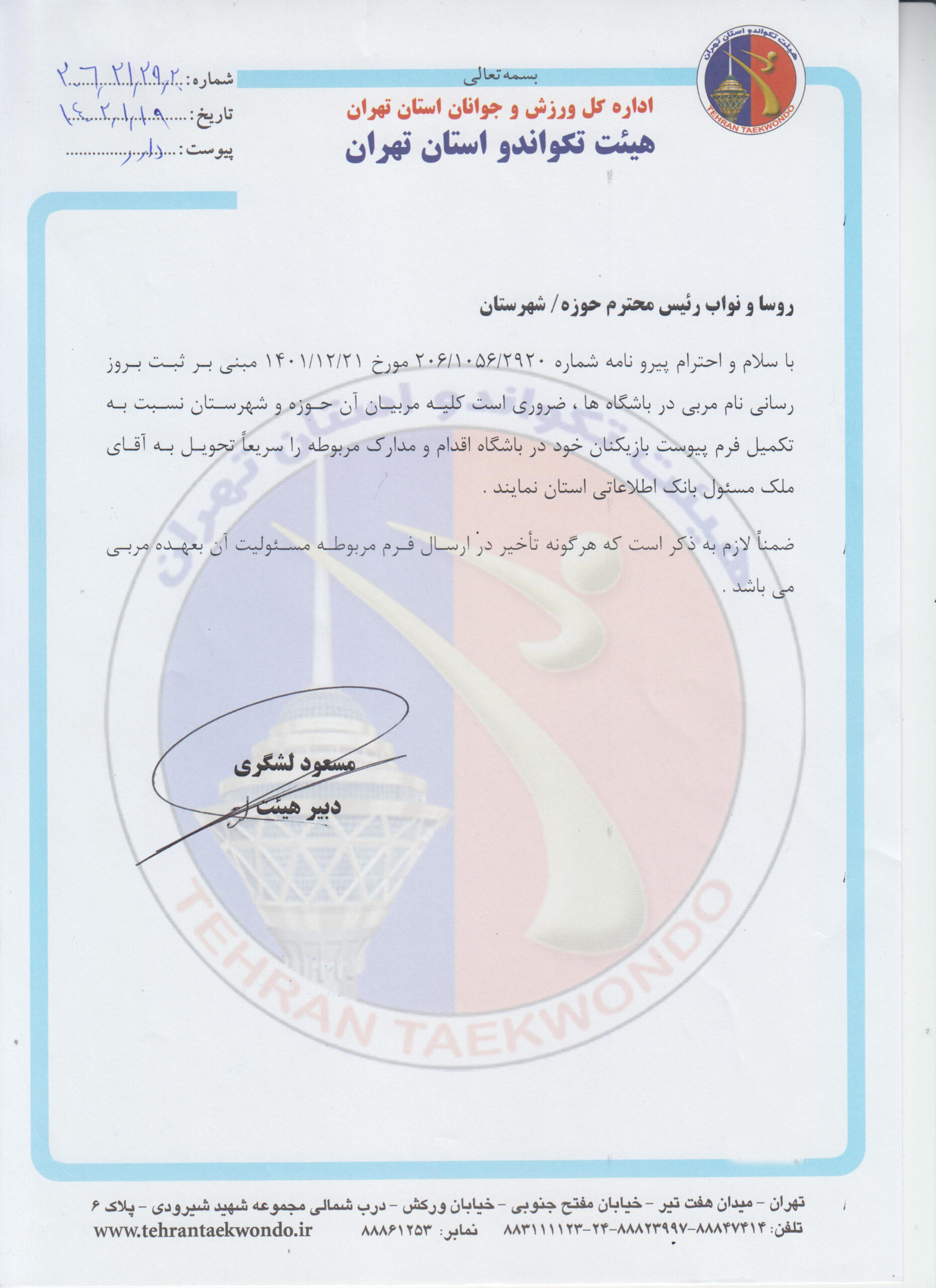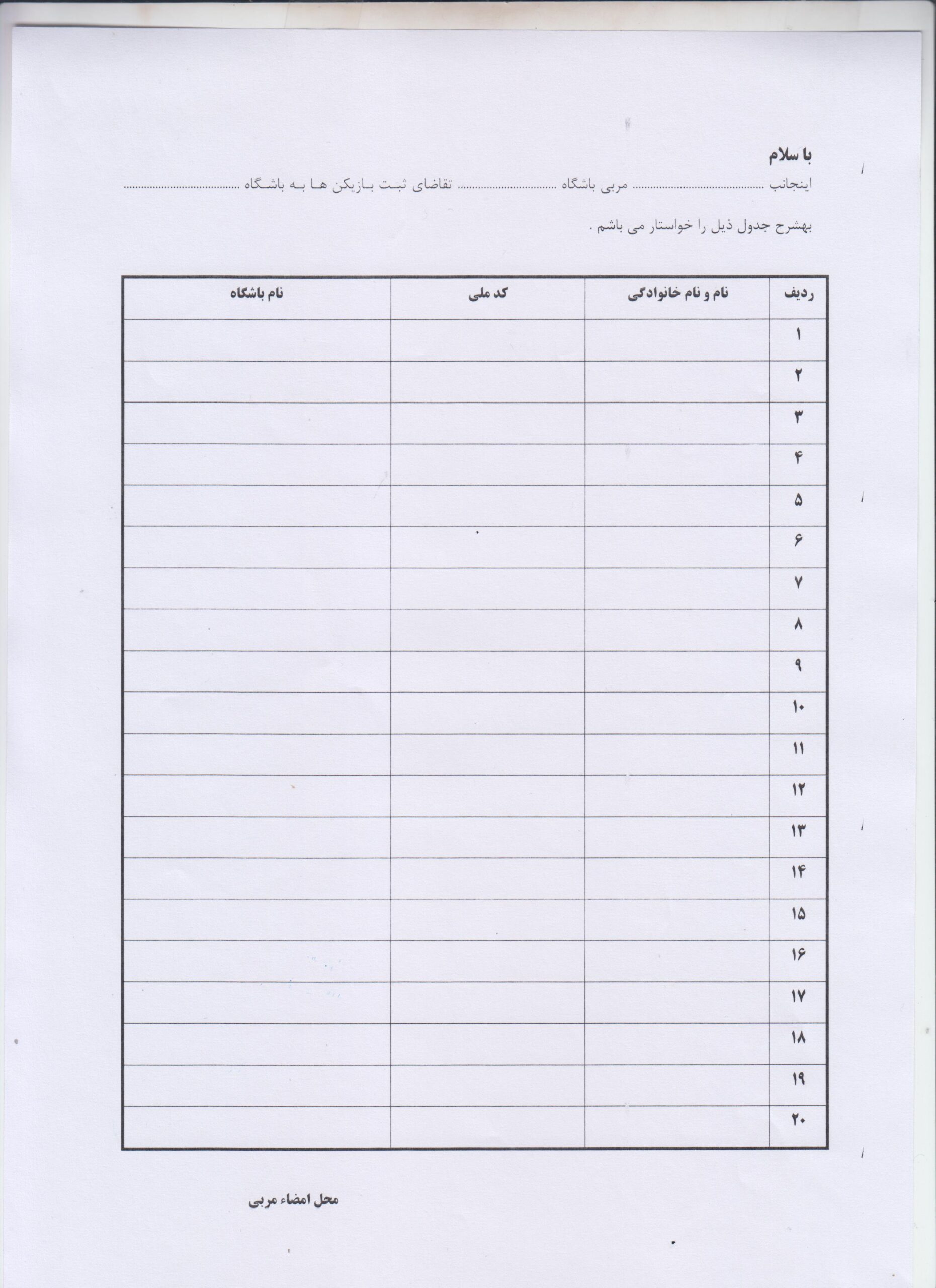 اطلاعیه/ارسال اسامی بازیکنان مربی جهت ثبت باشگاهها توسط مربی