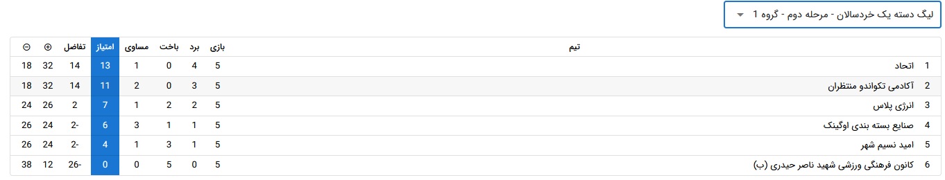 در پایان این رقابتها در گروه اول اتحاد با 4 بردو یک تساوی و کسب 13 امتیاز و آکادمی تکواندو منتظران با 3 بردو و 2 تساوی و کسب 11 امتیاز و از گروه دوم کانون فرهنگی ورزشی شهید ناصر حیدری با 4 برد و یک تساوی و کسب 13 امتیاز و باشگاه تکواندو امین ( دراگن) با 2برد،2 باخت و یک تساوی و کسب 7 امتیاز به فینال این رقابتها صعود کردند .