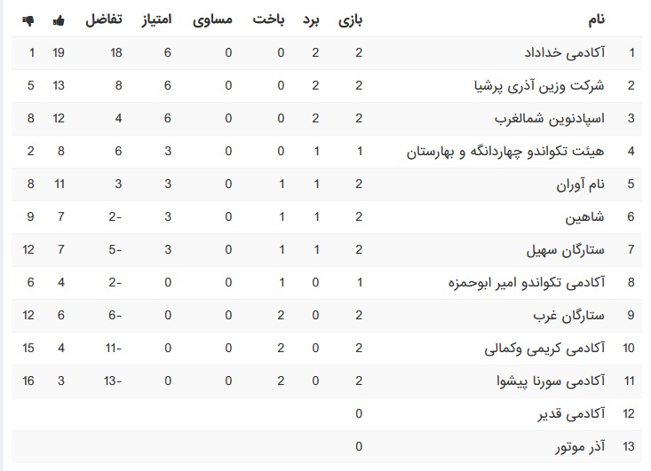 نتایج دیدارهای برگزار شده به شرح ذیل است ؛