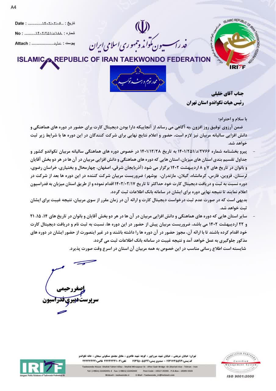 بخشنامه/دریافت دیجیتال کارت برای حضور در دوره هماهنگی و دانش افزایی مربیان