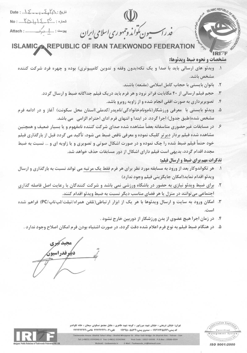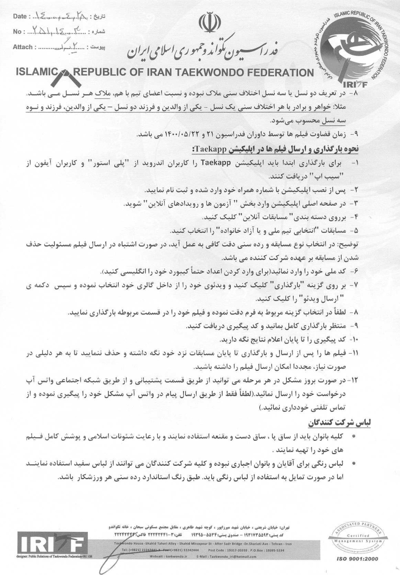 اطلاعیه مسابقات انتخابی تیم ملی پومسه بزرگسالان و آزاد جهانی خانواده چالش سوم