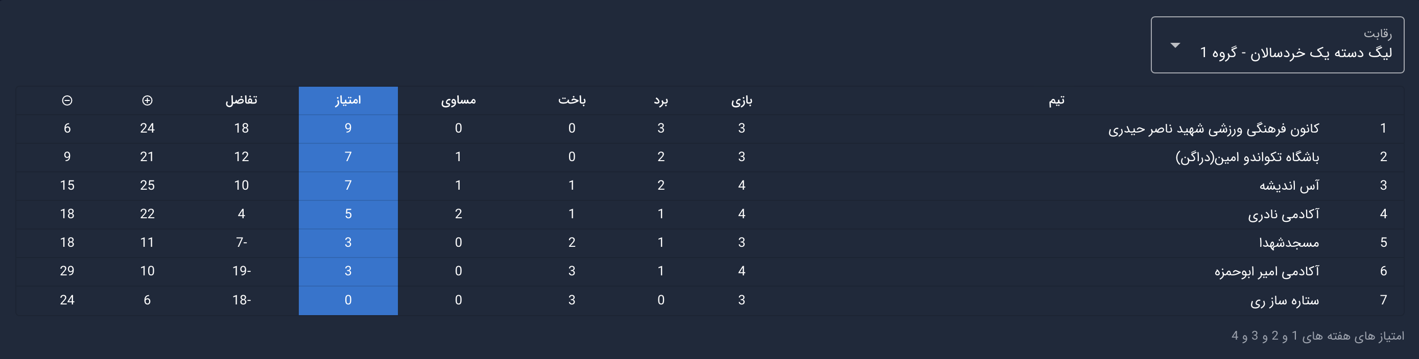 در پایان مبارزات هفته چهارم از رقابتهای لیگ دسته یک خردسالان پسر ،صدرنشینان چهار گروه مشخص و معرفی شدند.