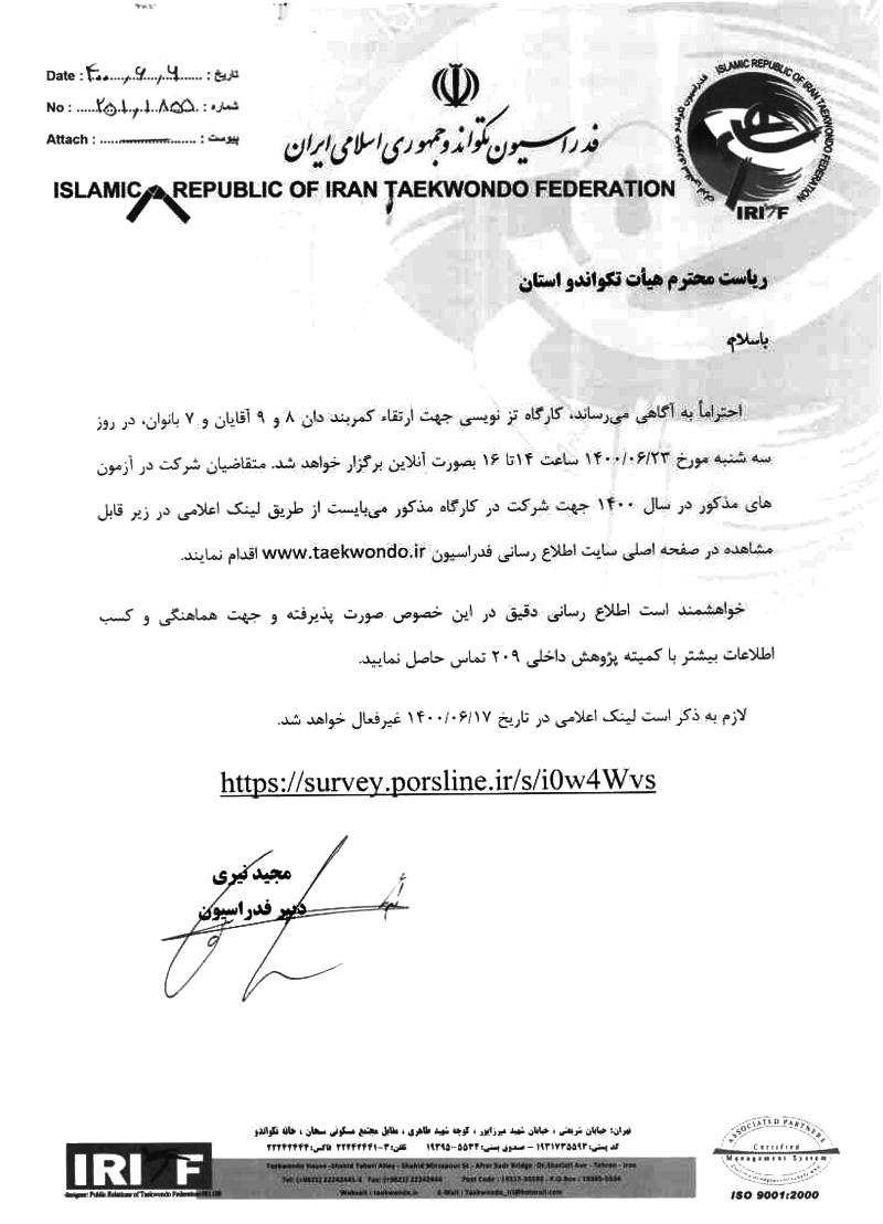 کارگاه تز نویسی ارتقاء کمربند دان ۸ و ۹ آقایان و ۷ بانوان