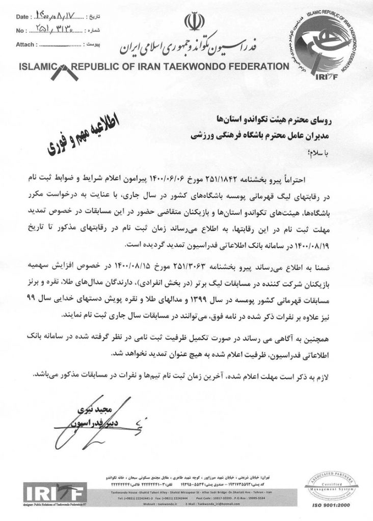 اعلام تمدید مهلت ثبت نام در لیگ های پومسه