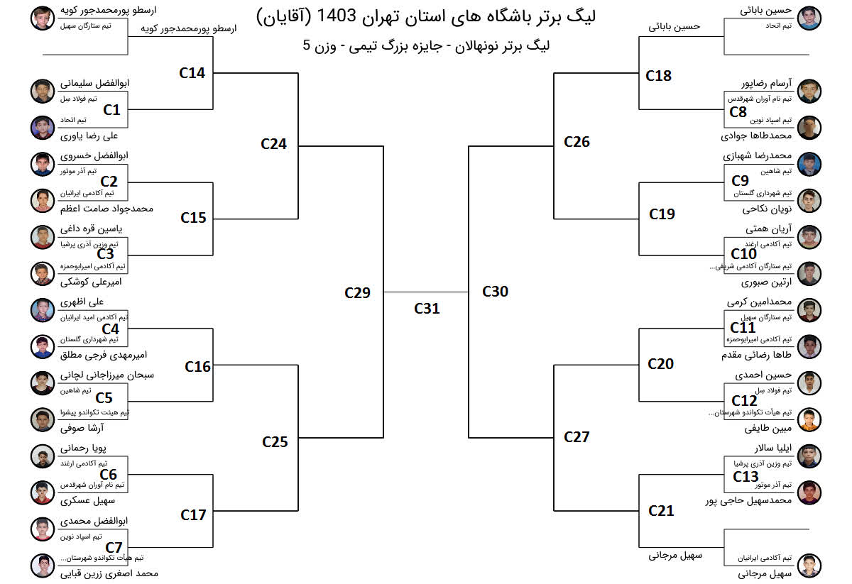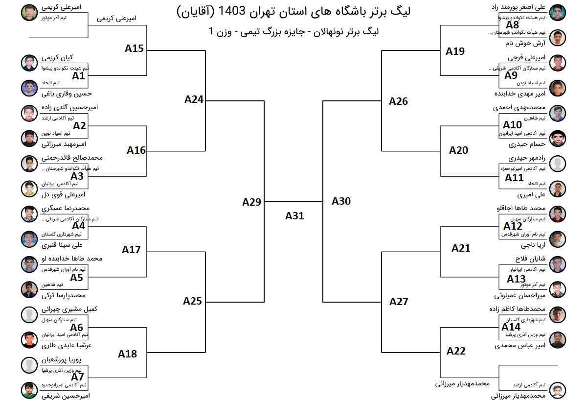 جداول دور اول رقابتهای لیگ برتر نونهالان در اوزان فرد