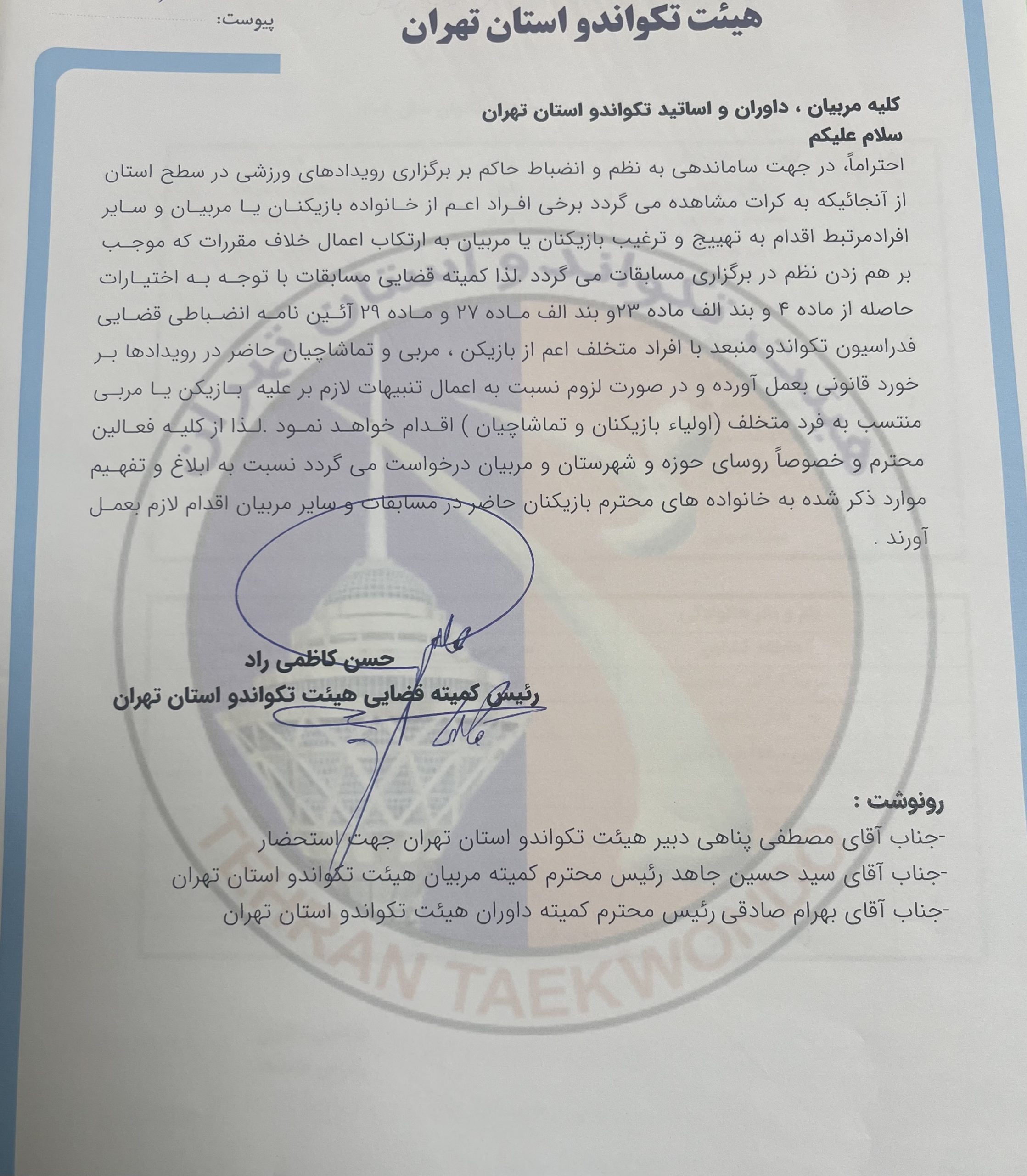 احتراماً، در جهت ساماندهی به نظم و انضباط حاکم بر برگزاری رویدادهای ورزشی در سطح استان از آنجائیکه به کرات مشاهده می گردد برخی افراد اعم از خانواده بازیکنان یا...
